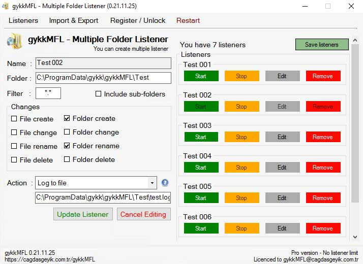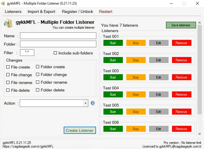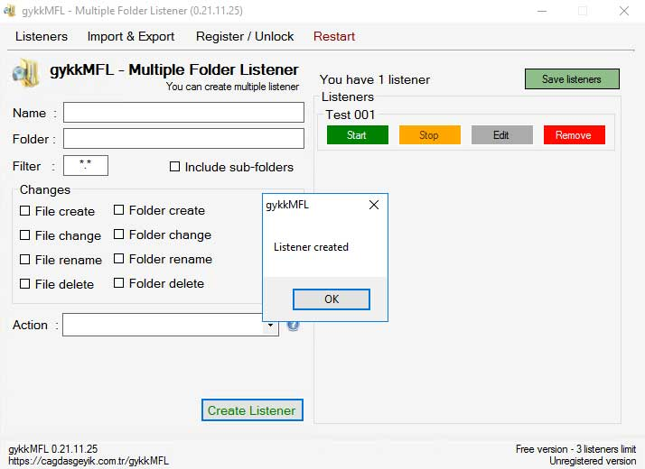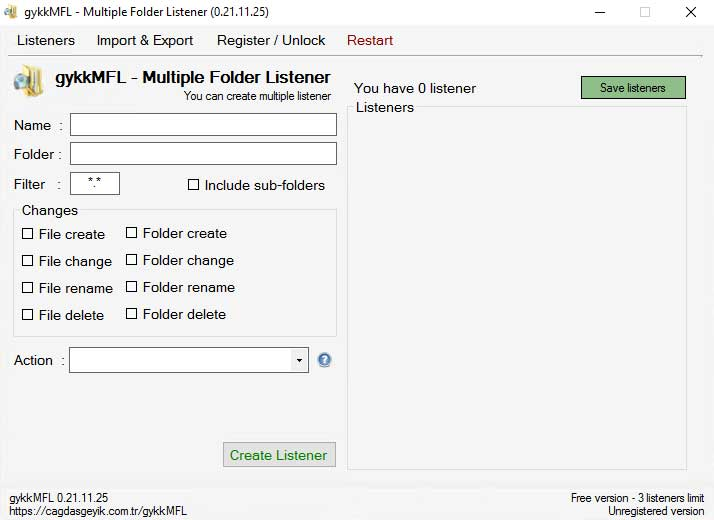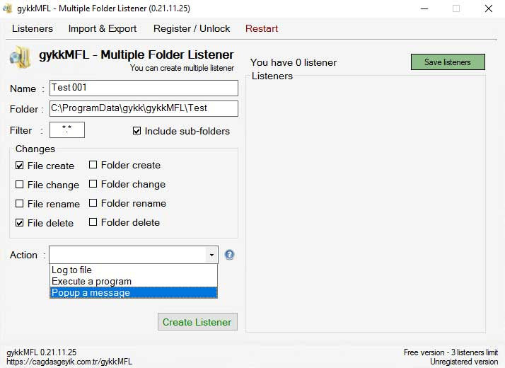 gykkMFL is a file or folder change tracking program that allows you to track multiple folders simultaneously for multiple change types.